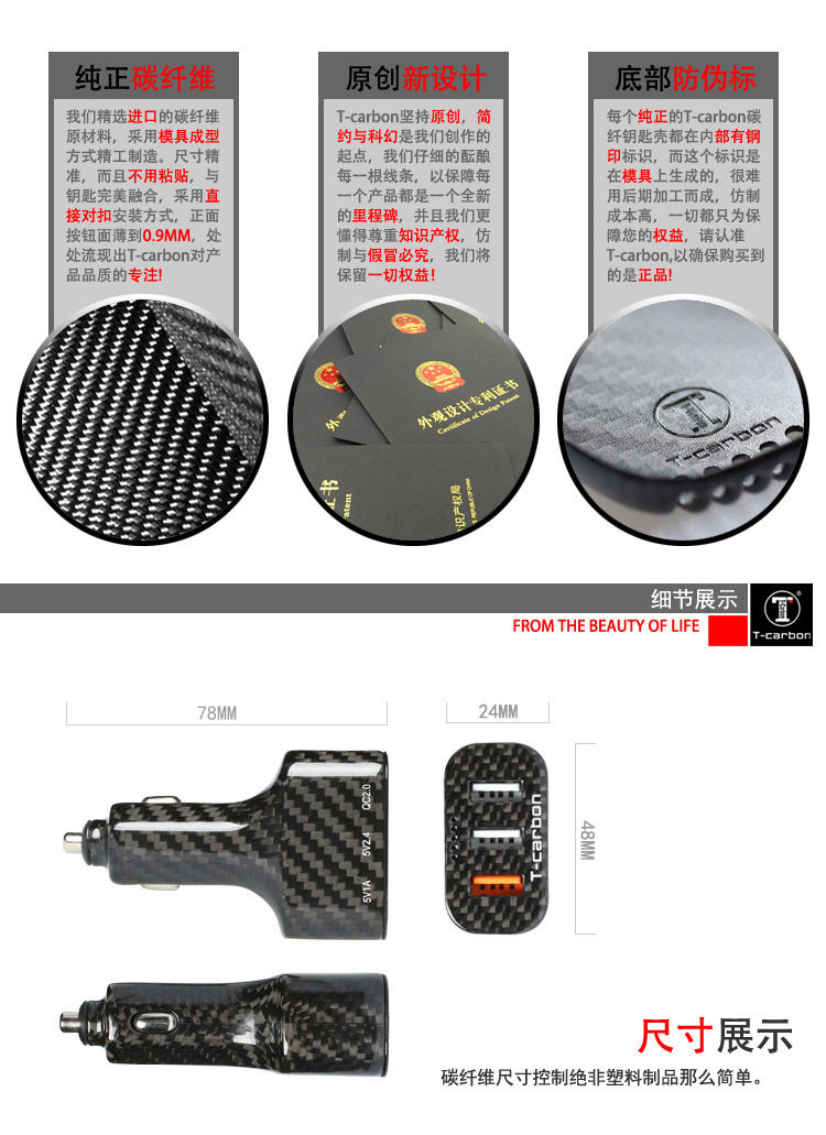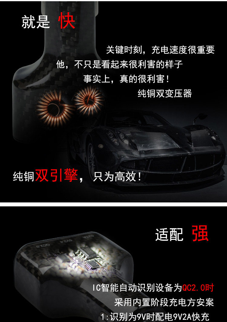·商品名称:碳纤维车载充电器